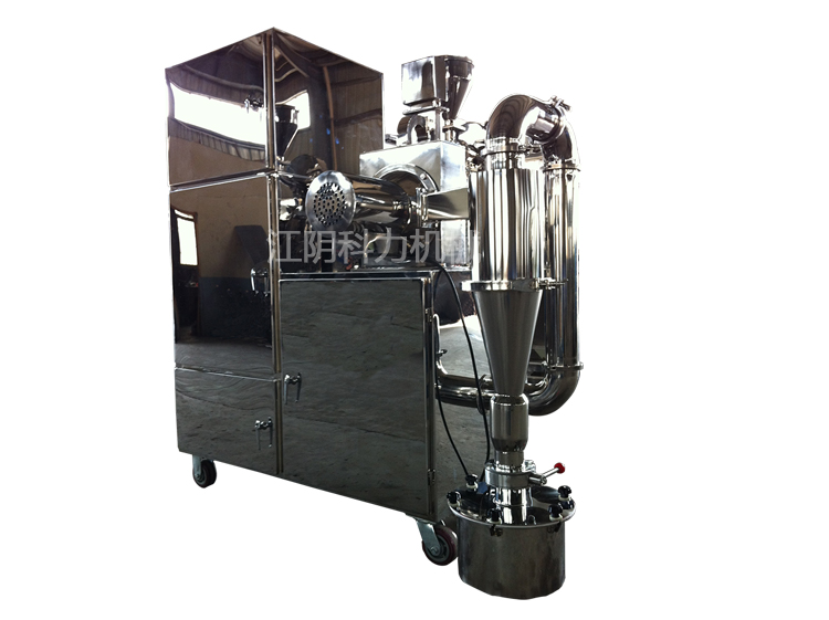 本机有主机、辅机、管道、电控箱等组成,辅机包括旋风收集器、滤袋式除尘器,主机内装有离心分级装置,除可完成粉碎外,还具有风选式分级功能,无筛无网,粉状粒度可任意调节。物料粉碎后,采用负压输送至排料筒。达到生产要求。该机是制药、食品、化工等工业粉碎物料的理想设备。